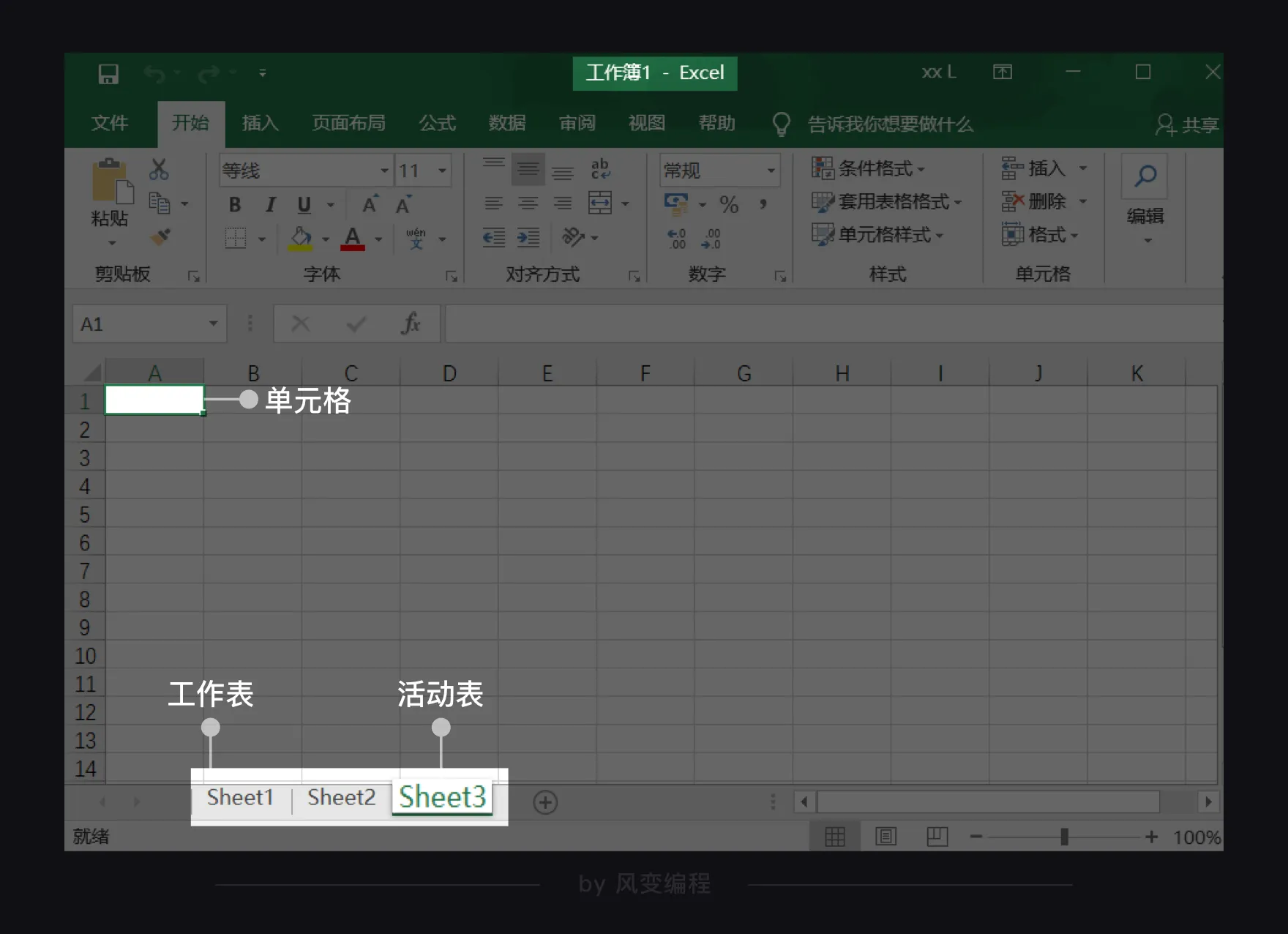 一个 Excel 文档也称为一个工作簿(workbook),每个工作簿里可以有多个工作表(worksheet),当前打开的工作表又叫活动表。